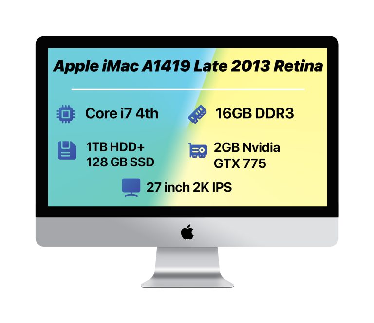 Apple iMac A1419 Late 2013 i7 دارای پردازنده اینتل Core i5 نسل 4 و 2 گیگابایت گرافیک Nvidia GTX 775 است. همچنین 4 پورت USB3 و 2 پورت Thunderbolt دارد. iMac A1419 رم قدرتمند 8 یا 16 گیگابایت DDR3 را دارد که دارای سرعت بالایی است و قابل ارتقا به ظرفیت های بالاتر (تا 32 گیگابایت) هم می باشد. این دستگاه با ظرفیت هارد 512 گیگابایت SSD موجود است. همچنین هارد ایمک قابل ارتقا به ظرفیت های بالاتر و یا ارتقا به حافظه HDD را نیز دارد. این ای مک در فروشگاه پی سی فای با گرید A (به معنی بسیار تمیز و دارای حداقل خط و خش) خدمت مشتریان عرضه می شود.